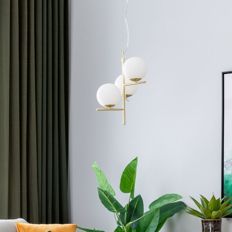 Trio Pure riippuvalaisin 3-osainenNäyttävä Trio Pure riippuvalaisin 3-osainen. Valaisimessa kauniit lasikuvut. Valaisimen runko metallia. Lasikuvun halkaisija on 16 cm. Klassinen kokonaisuus sisustamiseen. Maksimi ripustuskorkeus 150 cm. Valaisimessa ei ole kattokoukkua, kiinnitys metallilevyn ja ruuvien avulla kattoon. Valaisimessa 3xE14 kantaiset polttimot, polttimot eivät sisälly hintaan.
