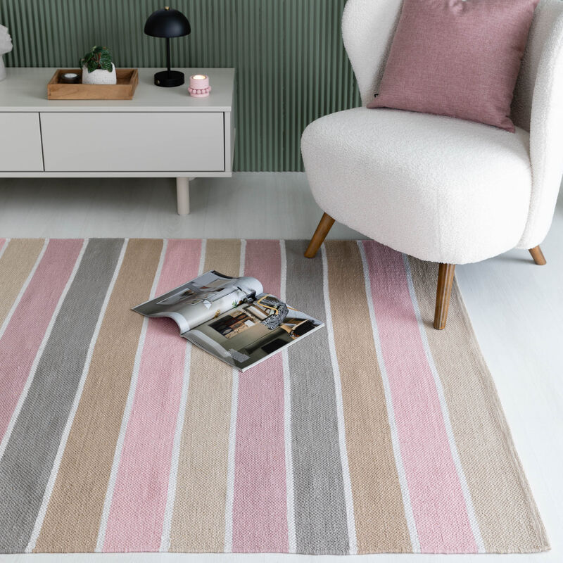 Trio puuvillamatto on helppo tapa tuoda kotiin pehmeyttä ja väriä ilman, että kokonaisuus tuntuu liian voimakkaalta. Hillityt pastellisävyt ja raitakuosi tekevät matosta ajattoman valinnan, joka sopii monenlaiseen sisustukseen ja eri huoneisiin.