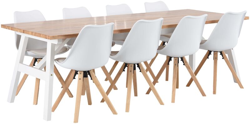 Tuohi-Bergen 8-hengen ruokailuryhmä valkoinen/lakattu tammi
