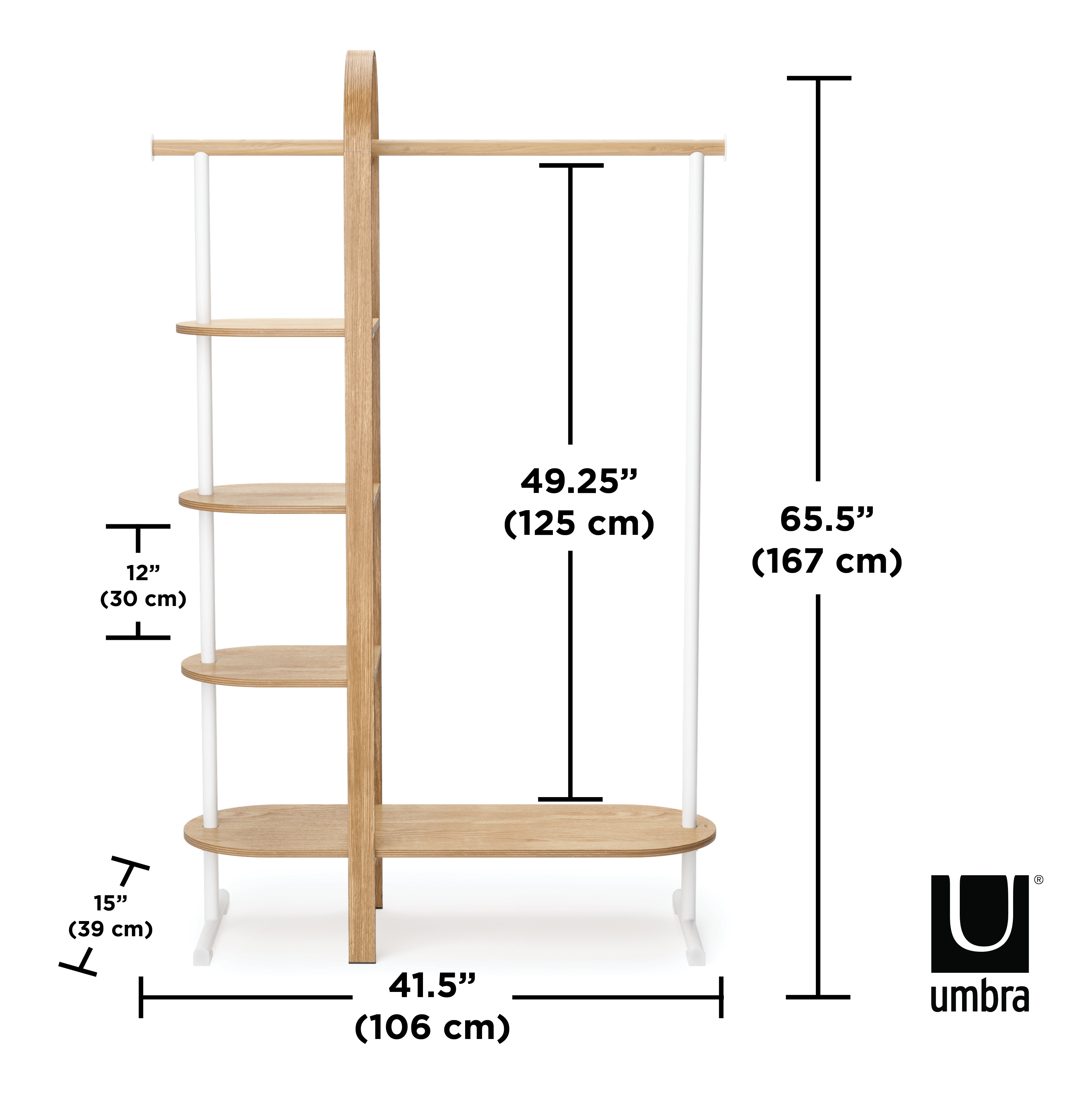 Sisustuksellinen Umbra Bellwood vaatetelineModerni vaateteline tarjoaa monipuolista säilytystilaa makuuhuoneeseen, eteiseen, vaatehuoneeseen kuin pukuhuoneeseenkin. Telineessä on hyvä säilyttää vaatteita, kenkiä, laukkuja ja muita asusteita.
