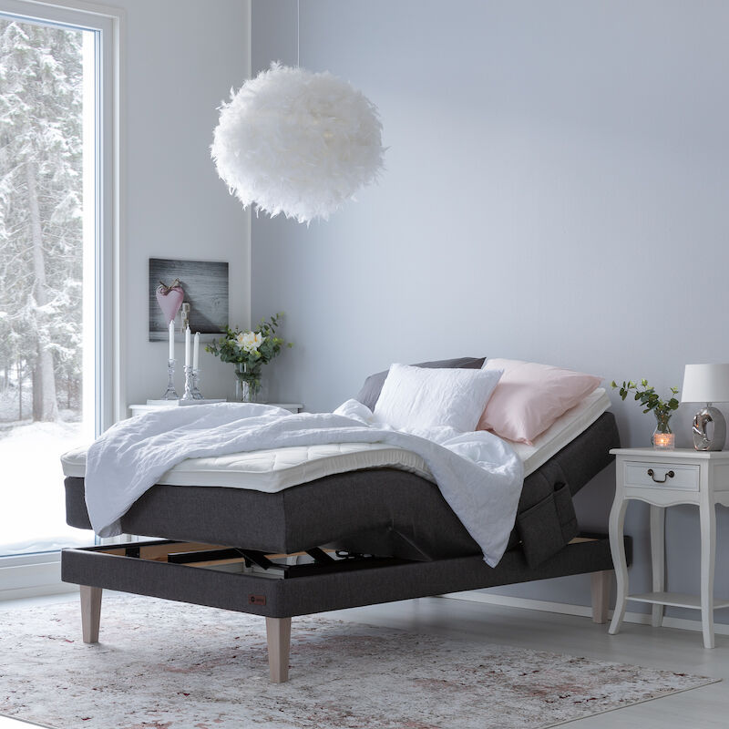 Suomessa valmistettu laadukas pussijousitettu moottorisänky, langattomalla kaukosäätimellä ja yövalolla. Koko: 120x200 cm.