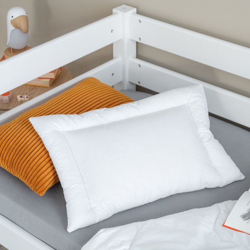 Pehmeä ja miellyttävä lasten tyyny, joka on valmistettu 100% puuvillasta. Tyynyn täytteenä on ilmavaa polyesteriontelokuitua 180 g. Ökö-Tex sertifioitu.