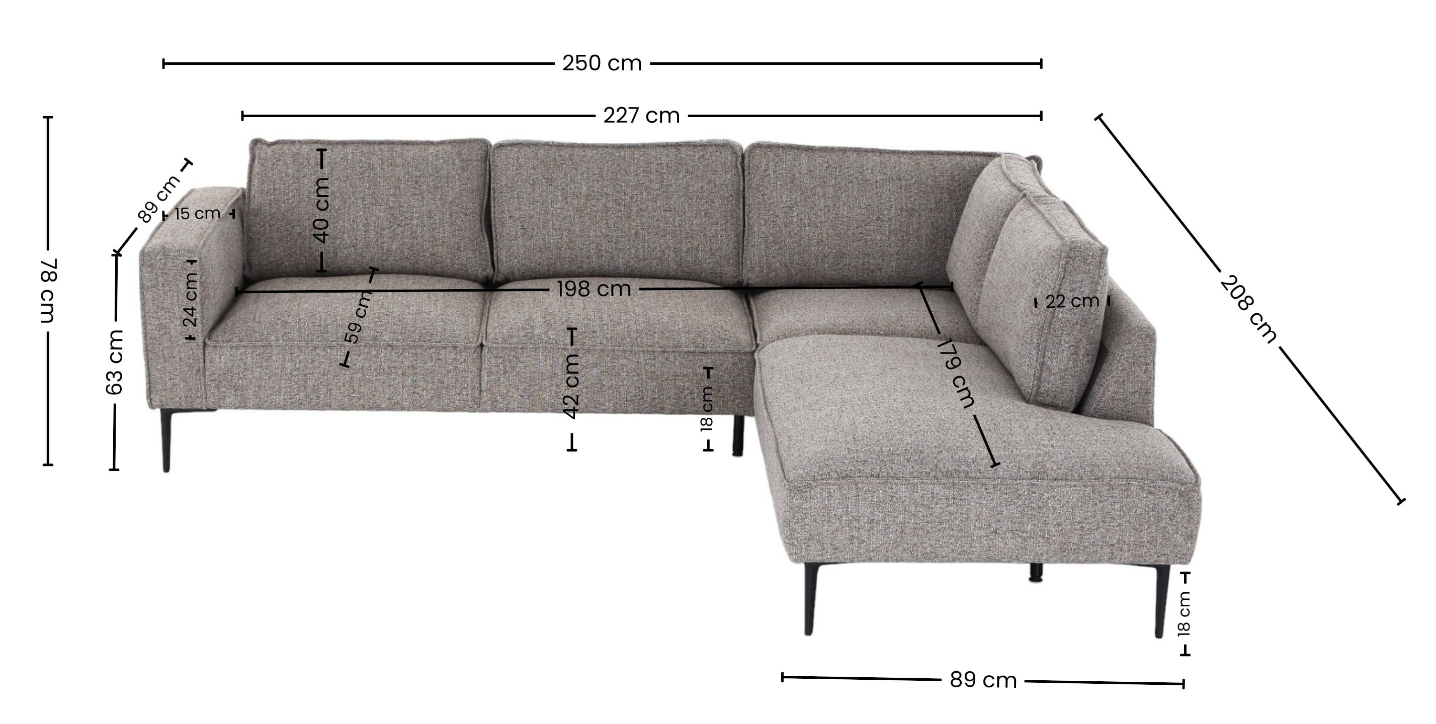 Unikko avokulmasohva oikea mocca Java 13, mustat jalat