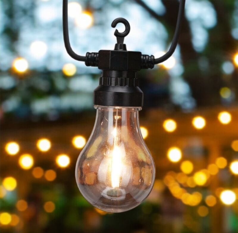 Tunnelmallinen 10-osainen valosarjaTällä valosarjalla tuot helposti lämpöä ja tunnelmaa ulkotiloihin, oli kyseessä sitten parveke, terassi tai puutarha. Klassisen muotoiset filamenttilamput luovat pehmeän, lämpimän valon, joka tekee tunnelmasta kutsuvan ja rauhallisen.