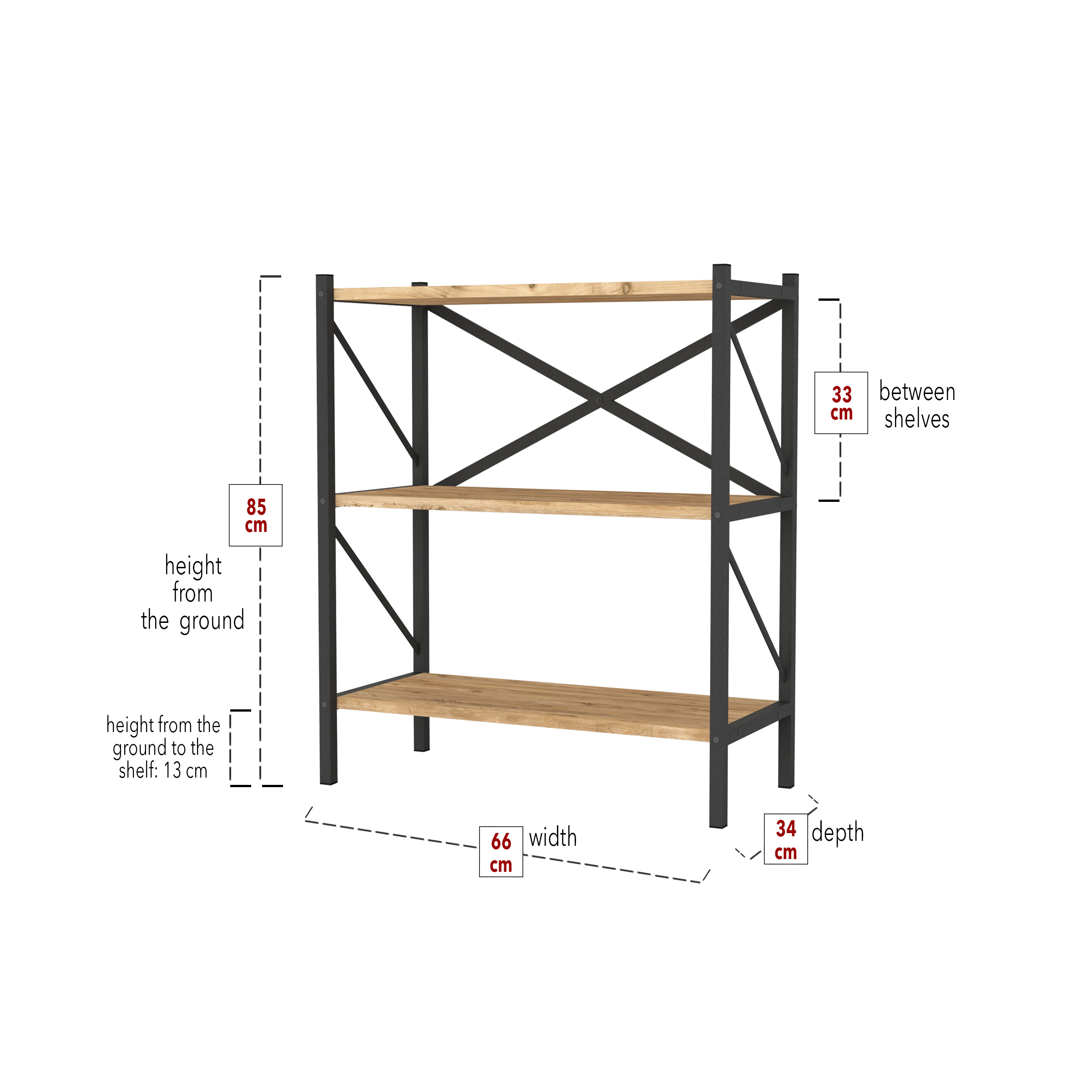 Vivano Mali avohylly 66x34x85 cmSelkeälinjainen ja moderni Vivano Mali avohylly tuo sisustukseen aavistuksen industriaalia tunnelmaa. Hyllyjen tammen värinen melamiinipinta tuo ripauksen luonnonläheistä tunnelmaa. Melamiinipintaiset hyllyt on helppo pitää puhtaana ja ne kestävät elämän pieniä kolhuja. Mustaksi pulverimaalattu metallirunko puolestaan tuo esiin tammen kauniin sävyn ja tuo samalla sisustukseen ryhtiä ja kontrastia.