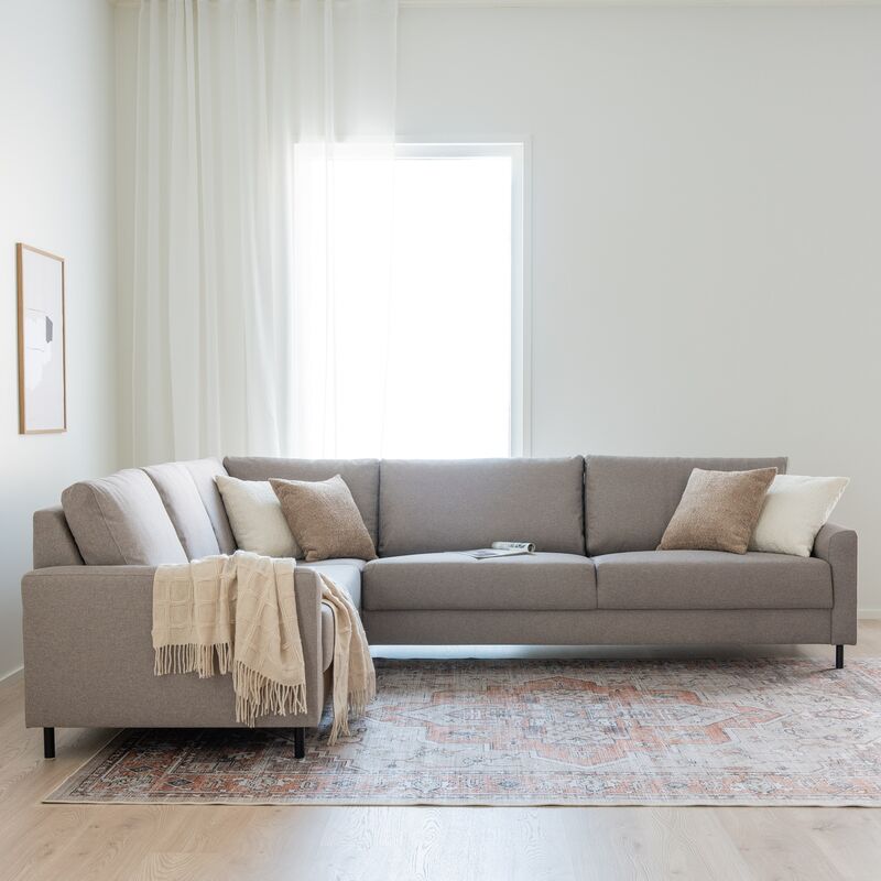 Osta tästä upea kulmasohva edullisesti! Tutustu lisäksi valikoimamme mattoihin, valaisimiin ja sisustustekstiileihin luoden olohuoneeseesi sisustuksellinen kokonaisuus.