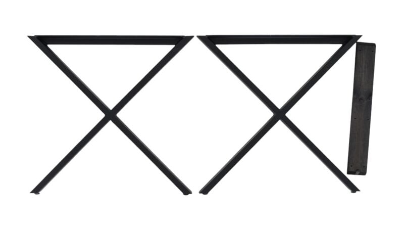 Modernit ja tukevat X-jalat lankkupöytään. Metallia, jauhemaalattu pinta ja 2 cm säätövara. Mukana kaksi jalkaa, kiinnityspalkit ja kiinnitysruuvit.