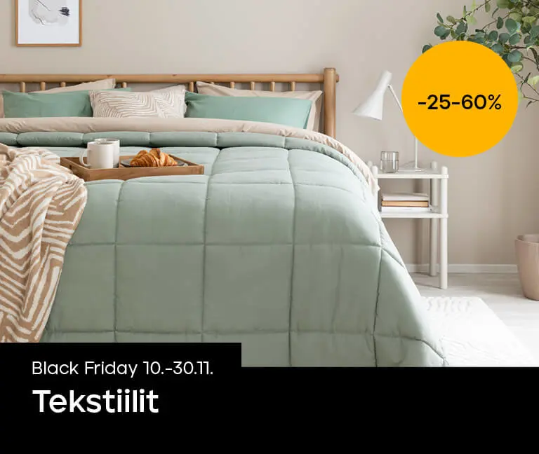 Tutustu Black Fridayn tekstiilien laajaan ja tyylikkääseen valikoimaan ja tilaa omasi heti tänään. Etsitkö tyynyjä, vilttiä tai vuodetekstiilejä? Uusi kotisi ilme edullisesti vuoden kovimman ostotapahtuman Black Fridayn aikana.